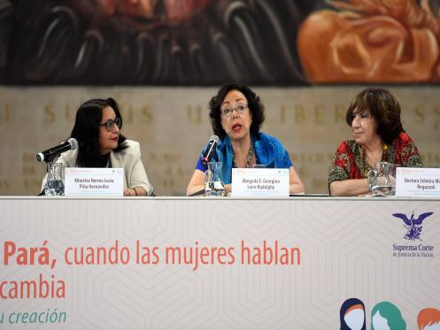 Ministra Norma Lucía Piña Hernández, presidió el Conversatorio Belém do Pará, cuando las mujeres hablan el derecho cambia. Ideólogas de su creación.