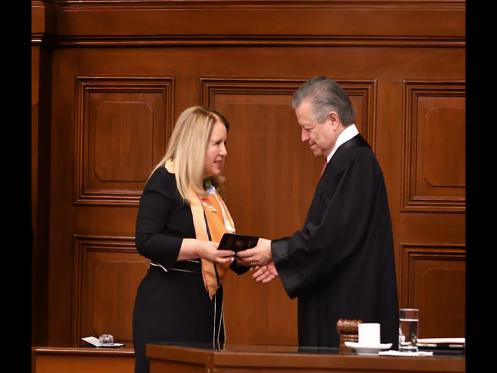 Ministro Arturo Zaldívar, Presidente de la Suprema Corte de Justicia de la Nación (SCJN) y del Consejo de la Judicatura Federal (CJF), en Sesión solemne conjunta de Plenos, entregó la credencial y el distintivo correspondientes a las nuevas Consejeras.